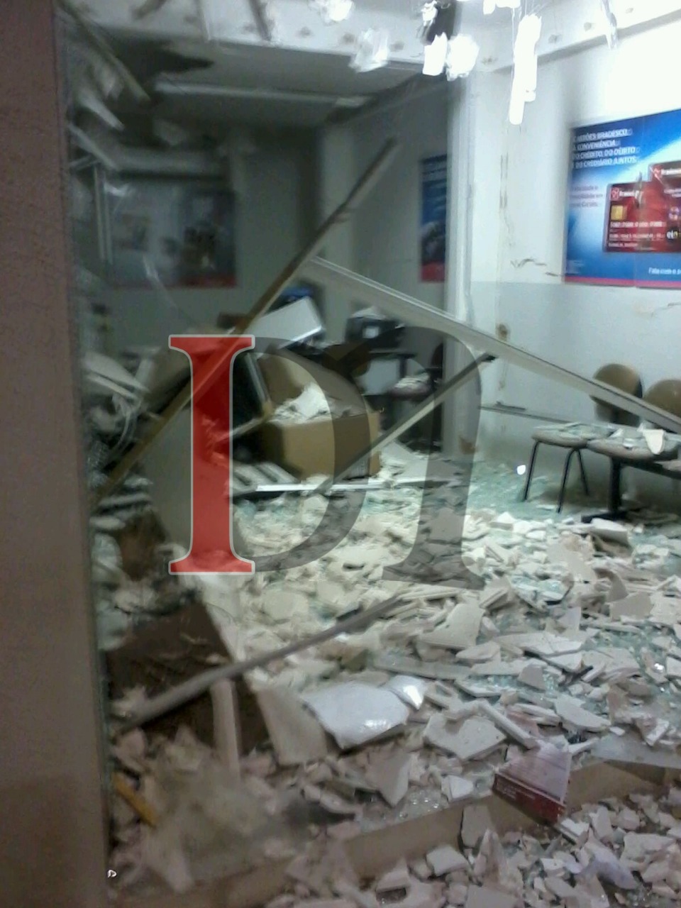 Agência bancária fica destruída após ação de criminosos Sobrando nada para ser aproveitado.